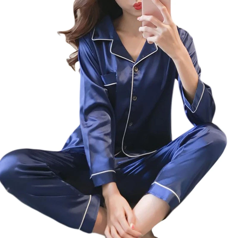 Klv Mode Chic Femmes Faux Soie Pyjamas Ensemble Luxe Maison Vetements A Manches Longues Vetements De Nuit Solide Salon 5 Couleurs Nouveau Aliexpress