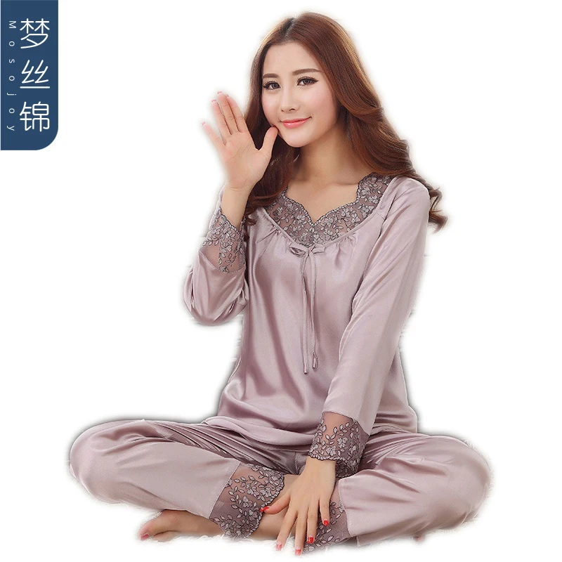18 Nouveau Femmes De Luxe En Soie Pyjamas Solide Broderie Pyjamas Femmes Salon Ensembles De Pyjama En Soie Satin Pijama Feminino Aliexpress