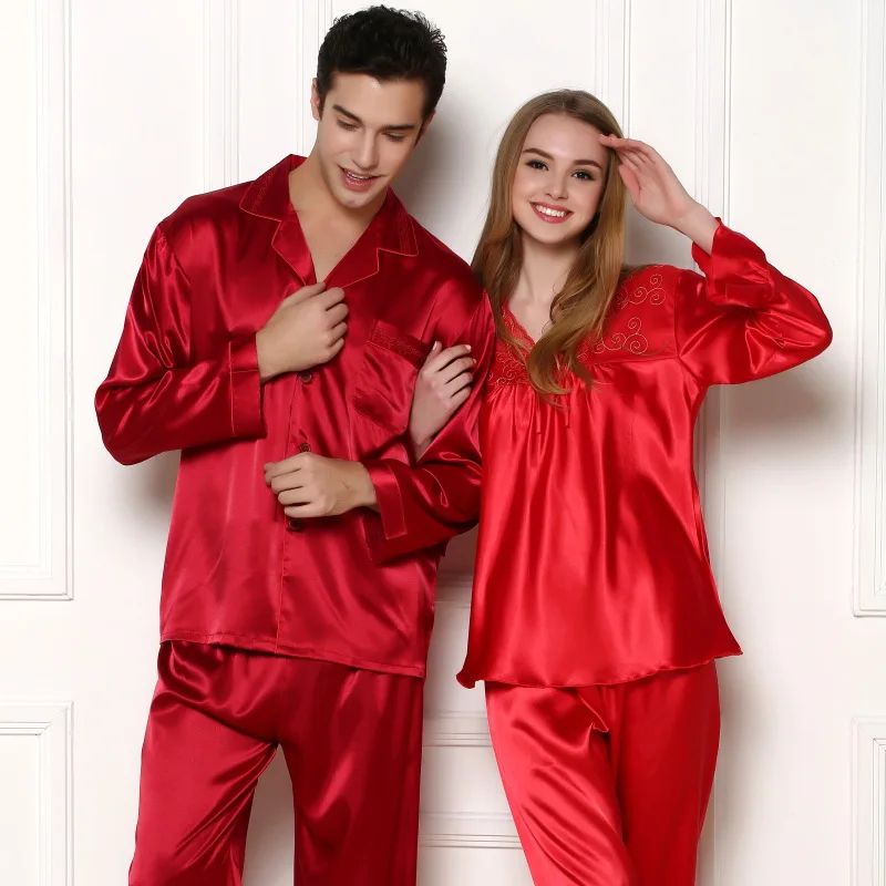 Luxe Chinois Rouge Amoureux Vetements De Nuit Femmes Soie Satin Pyjama Ensemble Ou Hommes Pijama Ensemble A Manches Longues Pyjama Ensemble Pour Printemps Automne Aliexpress