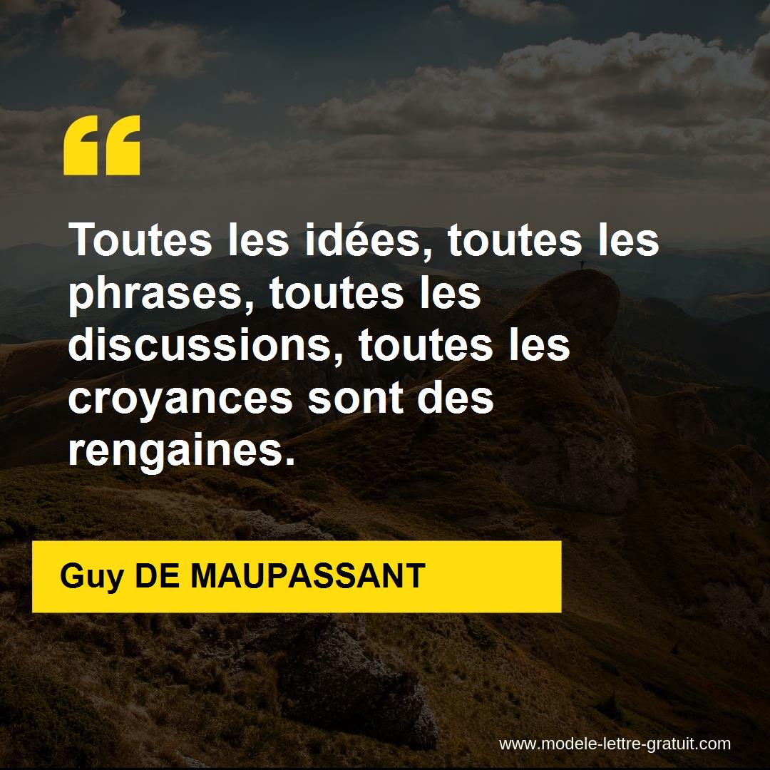 Citations de Guy de Maupassant Sélection de 500 citations et phrases de Guy de Maupassant Découvrez un proverbe, une phrase, une parole, une pensée, une formule, un dicton ou une citation de Guy. Sélection de 504 citations et phrases de Guy de Maupassant Découvrez un proverbe, une phrase, une parole, une pensée, une formule, un dicton ou une citation de Guy de Maupassant issus de romans,. Mais c'est la force de ceux qui n'en ont plus, c'est l'espoir de ceux qui ne croient plus, c'est le sublime courage des vaincus Une citation de Guy de Maupassant.