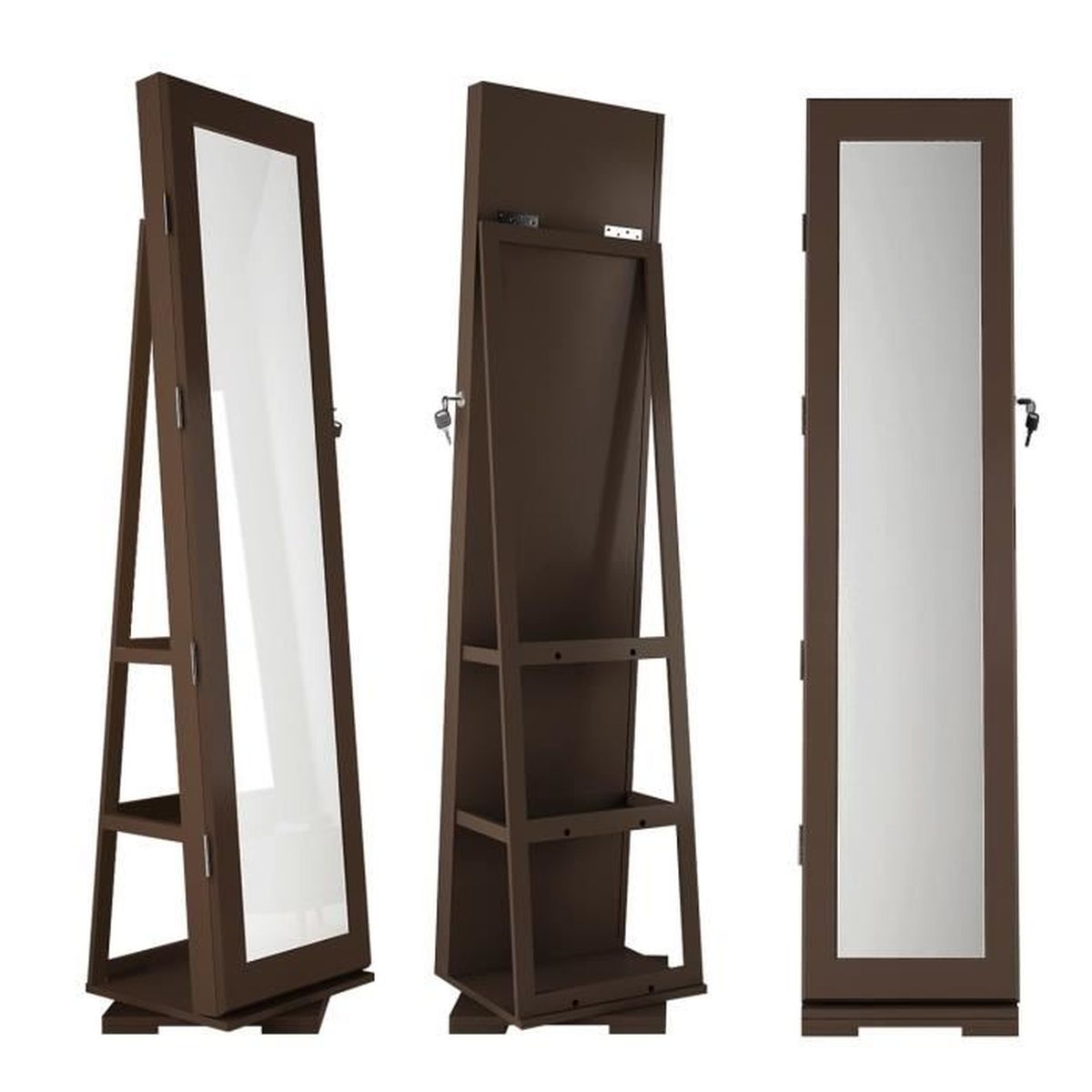Dlandhome Armoire A Bijoux Debout Avec Miroir Plein Longueur 360 Rotatable Base Autoportante Verrouillable A Pied Marron Achat Vente Armoire A Bijoux Soldes Sur Cdiscount Des Le Janvier Cdiscount