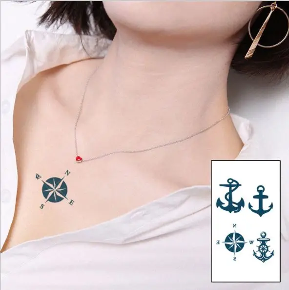 Tatouage Temporaire Pour Homme Femme Autocollants Impermeables Maquillage Maquiagem Maquillage Ancre Boussole Tatouage Wm053 Aliexpress