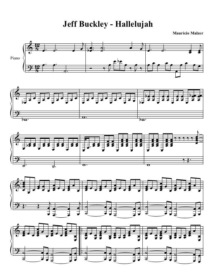 Free Hallelujah Jeff Buckley Sheet Music Preview 1 Piano Sheet Music Free Sheet Music Piano Sheet