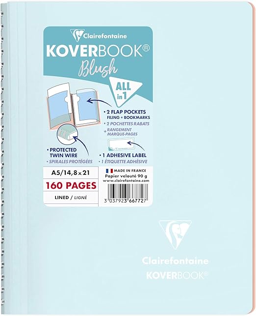 Amazon Com Clairefontaine Koverbook Blush Wirebound Notebook A5 90g Lined 80 Sheets Ice Blue Office Products
