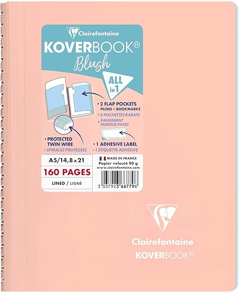 Amazon Com Clairefontaine Koverbook Blush Wirebound Notebook A5 90g Lined 80 Sheets Coral Office Products