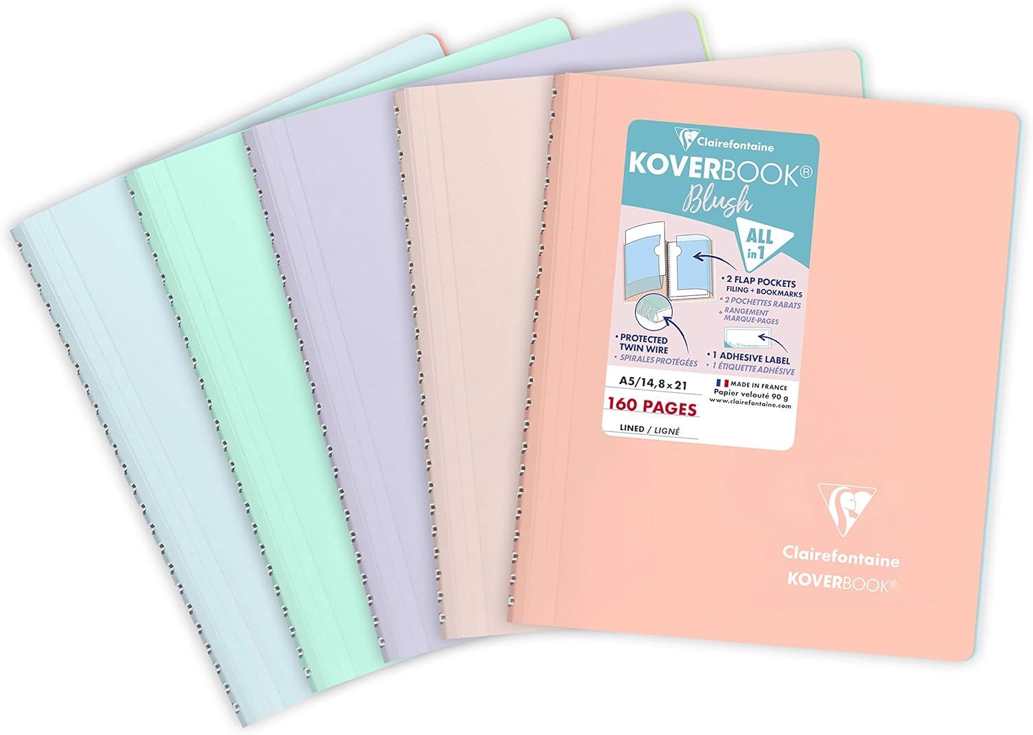 Amazon Com Clairefontaine Koverbook Blush Wirebound Notebook A5 90g Lined 80 Sheets Assorted Colours Pack Of 5 Office Products