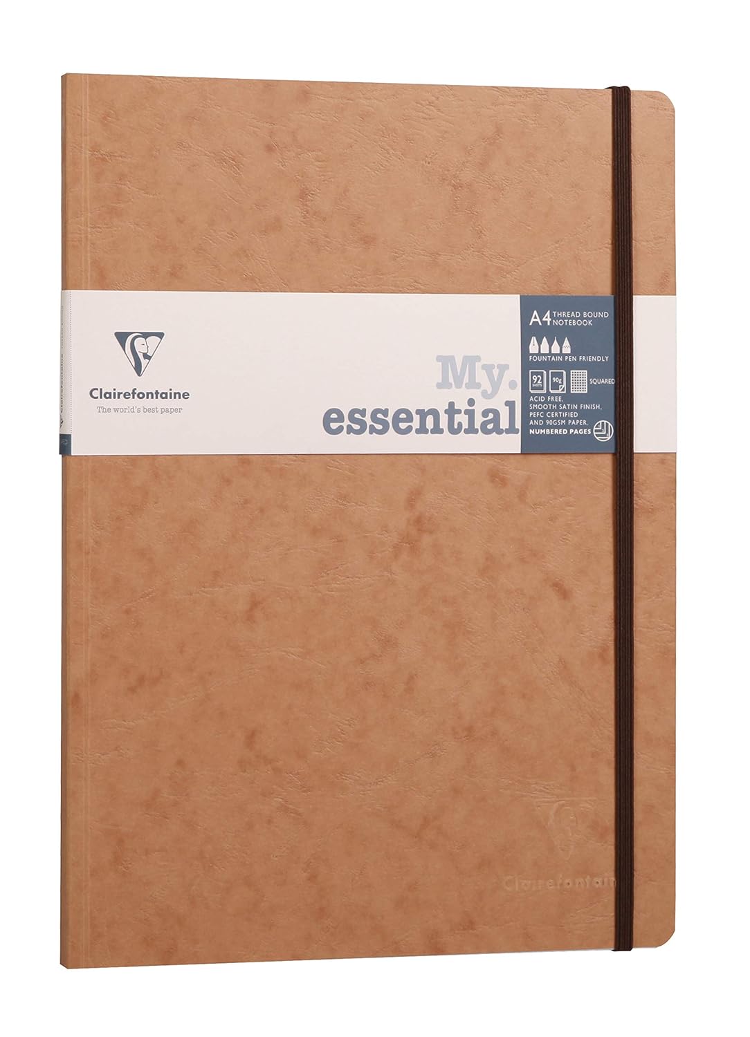 Papeterie Clairefontaine c Couverture Marron Marque Page Et 2 Poches De Rangement Fermeture Elastique Un Carnet Broche Cousu Dos Toile Age Bag 192 Pages Numerotees Ivoire 21x29 7 Cm Lignees Fournitures De Bureau