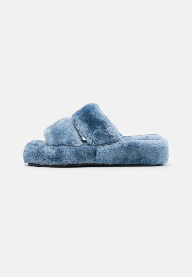 Cuir Hiver Femme Impermeable Tongs Chaussons Homme Semelle Epaisse Marine
