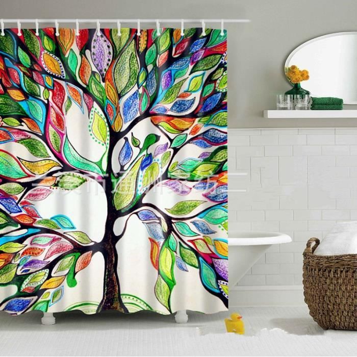 Zethome Rideau De Douche Zen 1 X 0 Cm Original Tissu Polyester Haute Qualite Joli Design Branche Et Moderne Impermeable Anti Moisissure Lavable En Machine Crochets Sont Inclus Ameublement Et Decoration Accessoires De