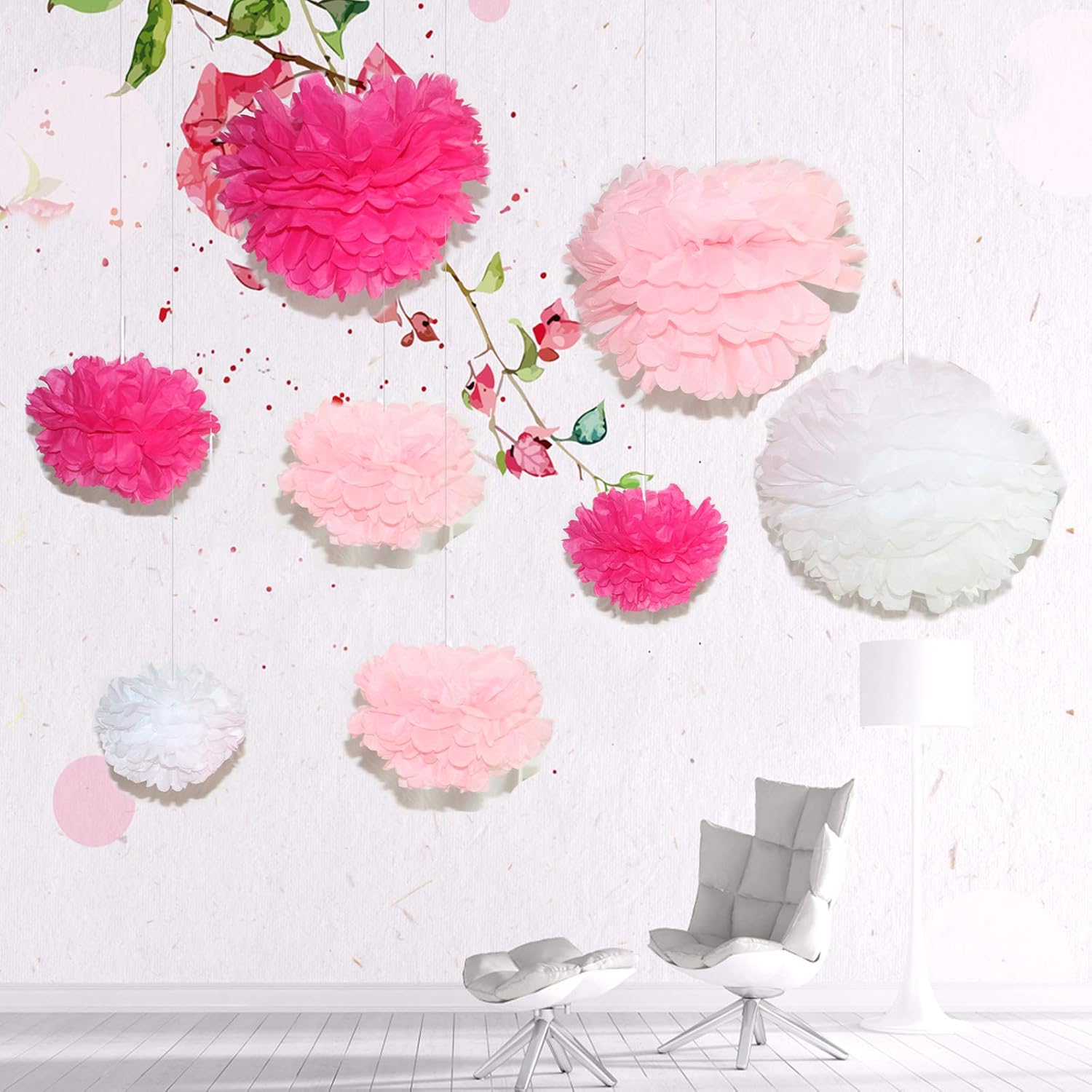 Pompons De Soie Guirlande De Noel Pour Deco Salle Pour Un Bapteme Fille Salle De Mariage Decoration Pour Lanniversaire De Fille Decorations Et Accessoires De Fetes Guirlandes Cotillons Et Confettis