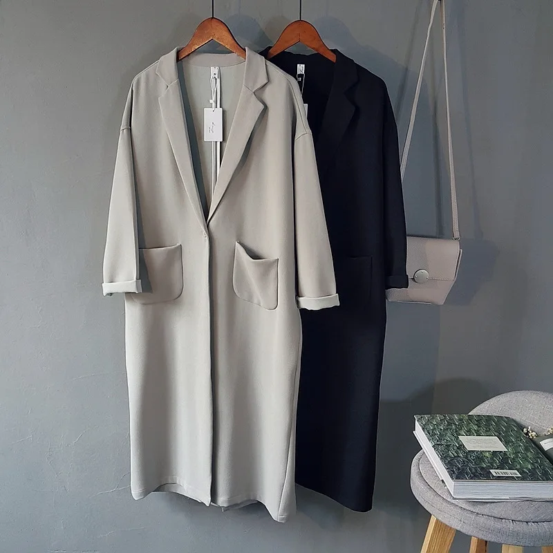 17 Autumn Women Loose Long Blazer Jacket Notched Single Button Blazer Outfits Black Light Gray Coats Outwear Casaco Feminino Long Blazer Jackets Button Blazerlong Blazer Aliexpress