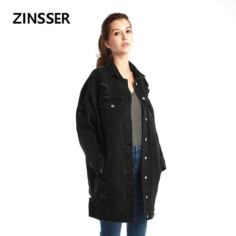 Acheter Femmes Denim Fantaisie Longue Veste Oversize Lache Casual Manches Longues 100 Coton Lave Bleu Noir Dechire Femme Dame Manteau De 77 79 Du Hannahao Dhgate Com