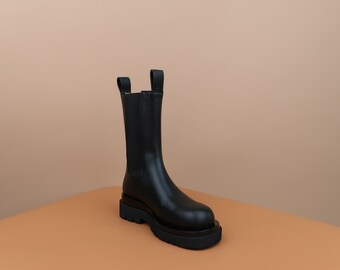 Bottes Italiennes Hautes Pour Femme En Cuir Fait A La Main En Italie