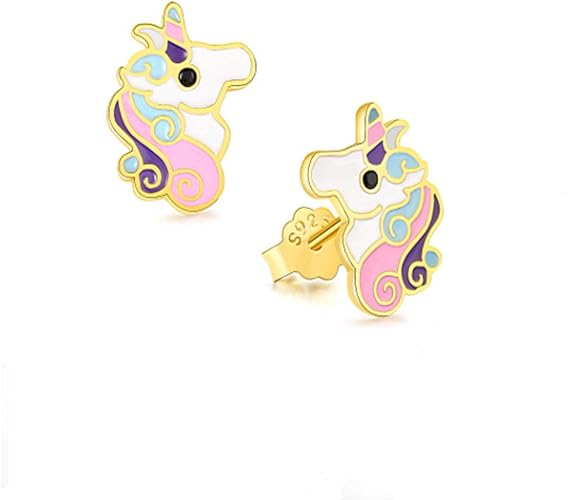 Boucles Doreilles Licorne Multicolores En Argent Sterling 925 Pour Filles Boucles D Oreilles Bijoux