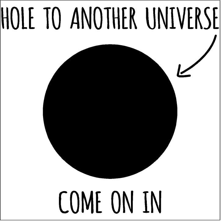 A black hole would suck things in at one end, while a white hole would push them out the other, and into a new universe or another point in our own Juan Maldacena of Princeton and Leonard Susskind. See a recent post on Tumblr from @lovegirlbr about holetoanotheruniverse Discover more posts about holetoanotheruniverse. Hole to Another Universe is a 335inch by 33inch black cut vinyl selfadhesive wall decal Instructions are included;.
