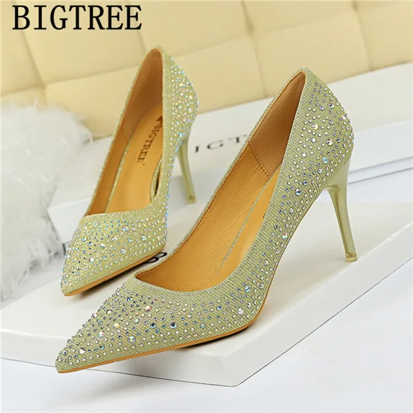 Rhinestone Heels Wedding Shoes Pink Heels Female Shoes Valentine Shoes High Heels Fashion Chaussure Mariage Femme Zhenskaya Obuv Women S Pumps Aliexpress