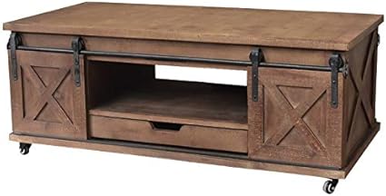 Chemin De Campagne Grande Table Basse De Salon Bois Fer Porte A Roulettes 1x60x45 Cm Amazon Fr Cuisine Maison