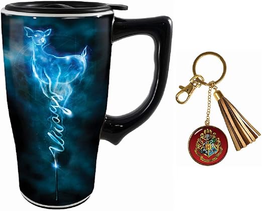 Amazon Com Spoontiques Harry Potter Bundle Patronus Travel Mug And Hogwarts Keychain Kitchen Dining