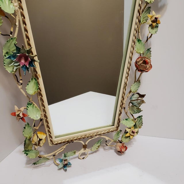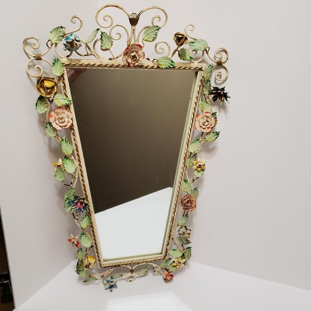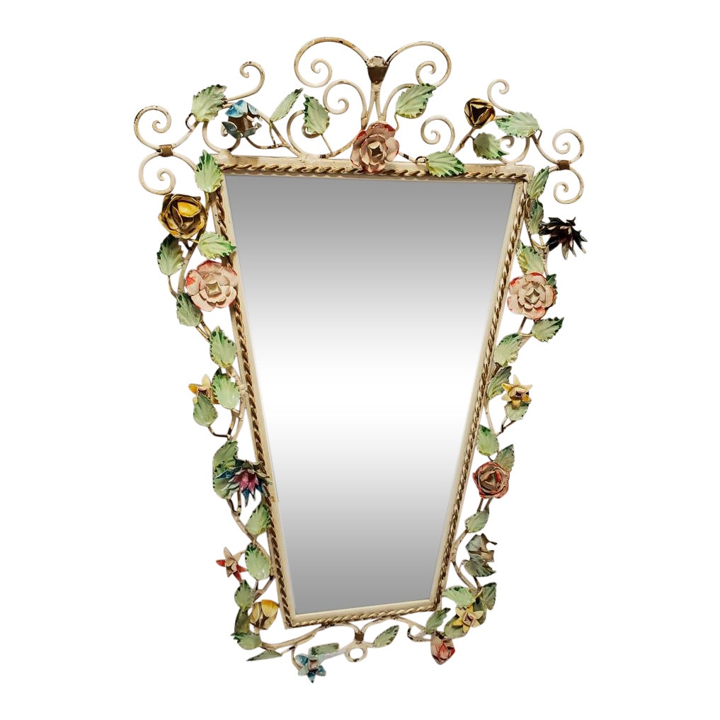 Vintage Italian Shabby Chic Floral Tole Wall Mirror Chairish