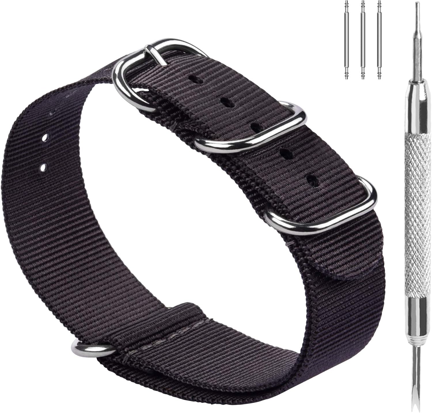 Bracelet De Montres Fullmosa Nato 18mm mm 22mm 24mm Bracelet Montre Pour Homme Femme Bleu 24mm 10 Couleurs Montre Bracelet Nylon A Rayure Avec Fermoir Metal Reglable Sports Et Loisirs