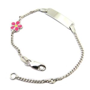 Gourmette Identite Enfant Personnalisee Avec Pierres En Zirconium Rose
