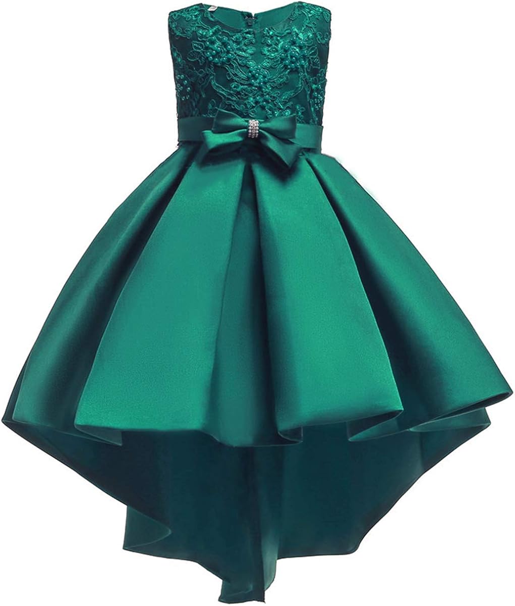 Obeeii Filles Robes Asymetrique En Satin Sans Manches Avec Patchwork De Broderies Florales Robe Brodee De Soiree Elegante Pour Ceremonie Mariage Demoiselle Dhonneur Communion Fete Prom 4 12 Ans Fille Vetements