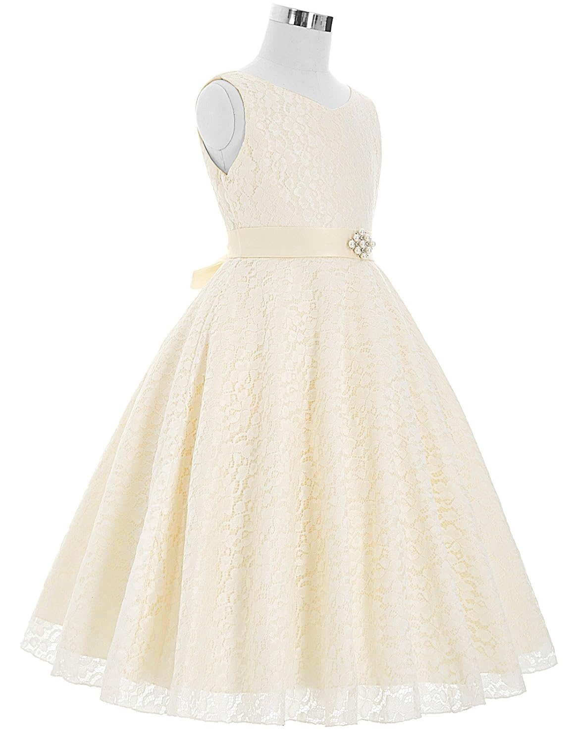 Obeeii Fille Robe Longue De Ceremonie En Dentelle Florale Elegante Robe Princesse Sans Manches De Mariage Demoiselle D Honneur Soiree Anniversaire Fete Cocktail Dance Prom Pour Enfants Ado 4 14 Ans Amazon Fr Vetements Et