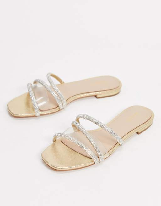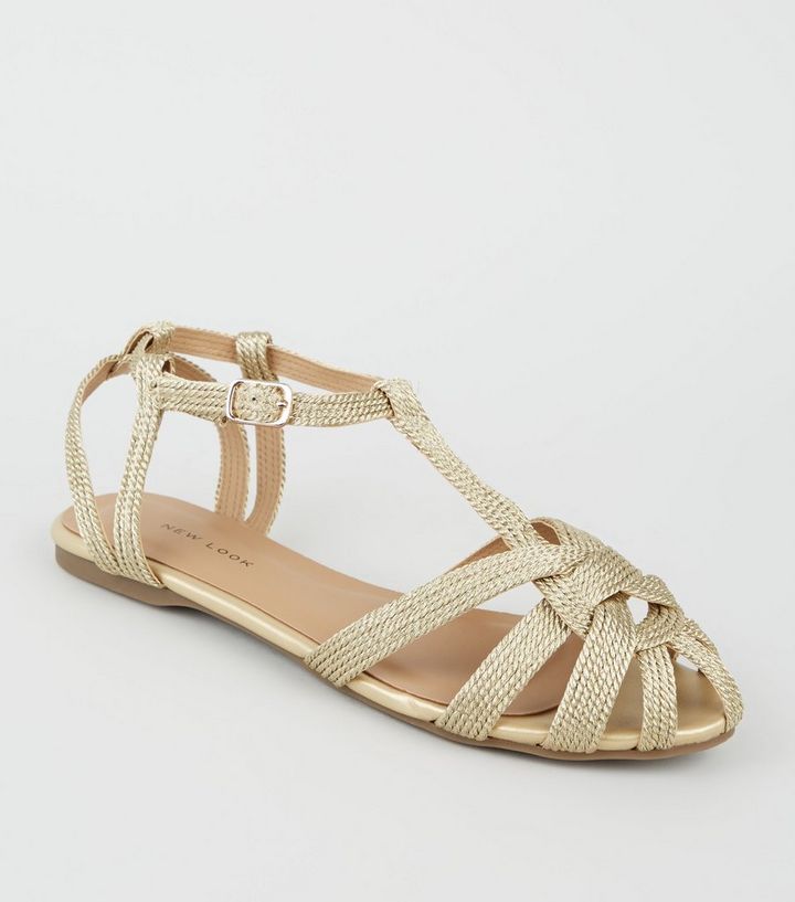 Sandales Plates Dorees En Bride Tressee New Look