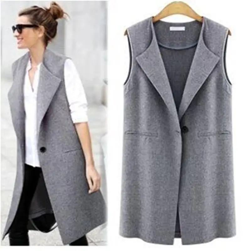 Blazer Sans Manches Gris Noir Slim Gilet Long Sans Manches A La Mode Manteau D Exterieur Pour Femme 0703 Ete Aliexpress