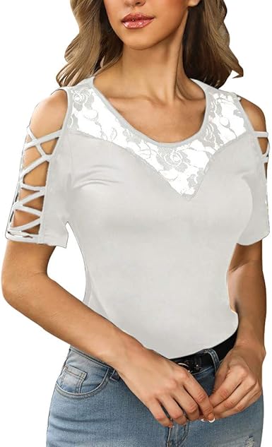 Berimaterry T Shirt Gilet Sexy Vetements D Ete Pour Femmes Chemise Sexy En Dentelle A Manches Courtes Debardeur Decontracte Personnalite Cool T Shirt Gilet Col Rond Couleur Unie Amazon Fr Vetements Et Accessoires