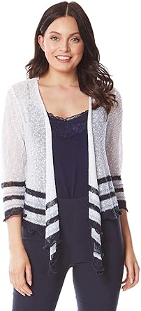 Roman Originals Femmes Bolero Asymetrique A Rayures Gilets D Ete Femme En Maille Avec Manches Et Coupe Ouverte Simples Decontractes Et Parfaits Au Quotidien Amazon Fr Vetements Et Accessoires