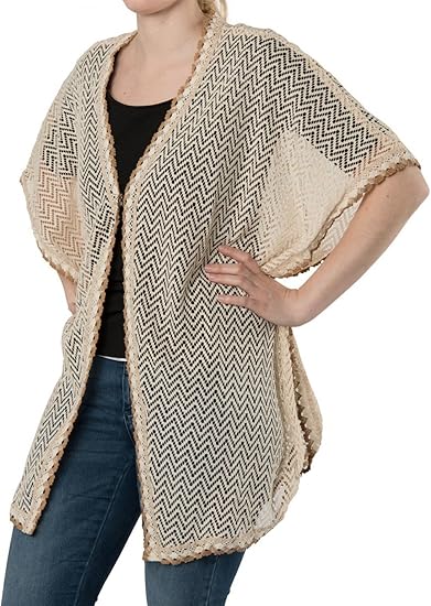 Stylebreaker Poncho En Crochet Avec Des Emmanchures Ouvertes Fermeture A Crochet Bordure Gilet D Ete Femmes Couleur Beige Marron Amazon Fr Vetements Et Accessoires