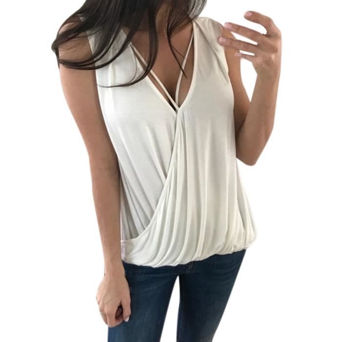 Femmes D Ete En Gilet V Profond Sans Manches En Chemisier Casual T Vrac Chemise Debardeurs Blanc Blanc Blanc Achat Vente Chemisier Blouse Soldes Sur Cdiscount Des Le Janvier Cdiscount