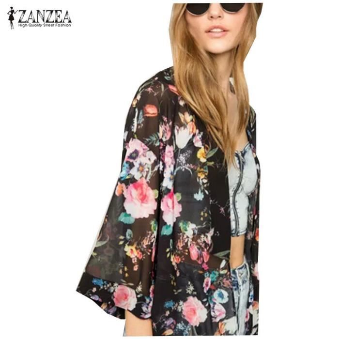 Cardigans A Manches 3 4 D Ete Pour Femmes Long Cardigan En Mousseline De Soie Floral Prjxv Taille 38 Noir Achat Vente Gilet Cardigan Soldes Sur Cdiscount Des Le Janvier Cdiscount