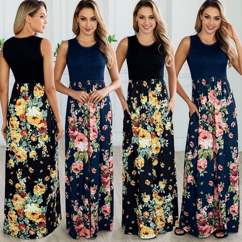 Acheter Femmes Gilet Dete Robes Imprime Poches Dentelle Plissee Robe De Plage Lady Robe Femmes Dete Cheville Longueur Des Robes 07 De 11 27 Du Bossbaby Dhgate Com