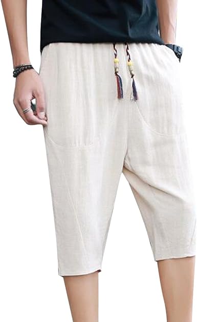 Pantalon 3 4 Pour Homme Mode Solide Couleur Taille Moyenne Loose Fit Sarouel Avec Cordon Confortable Taille Elastique Ete Casual Pantalons En Lin Bas Amazon Fr Vetements Et Accessoires