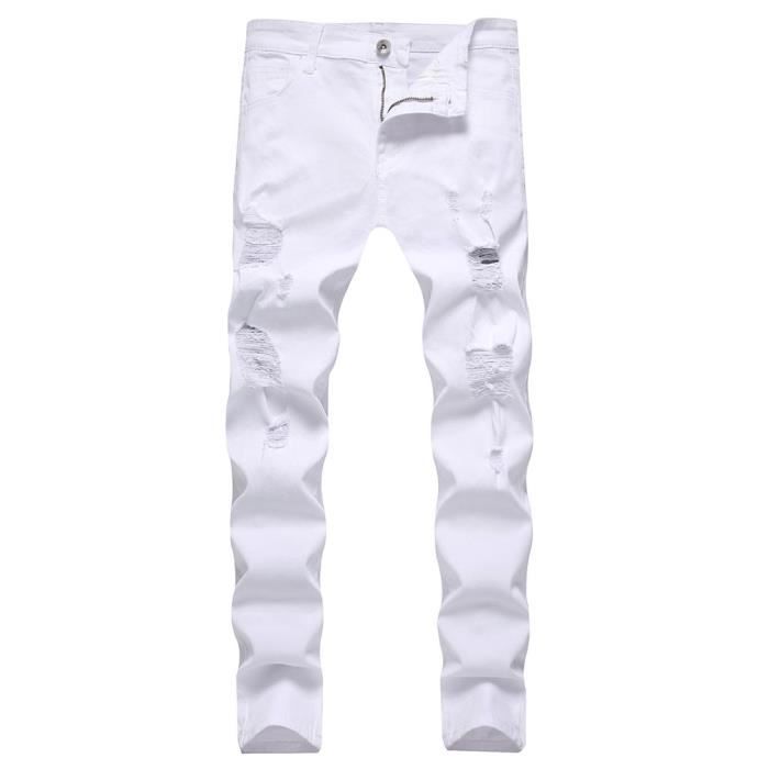 Jeans Homme Fashion La Taille Moyenne Skinny Coton 5 Poches Effet Delave Abrasions Effet Blanchi Blanc Blanc Achat Vente Jeans Cdiscount
