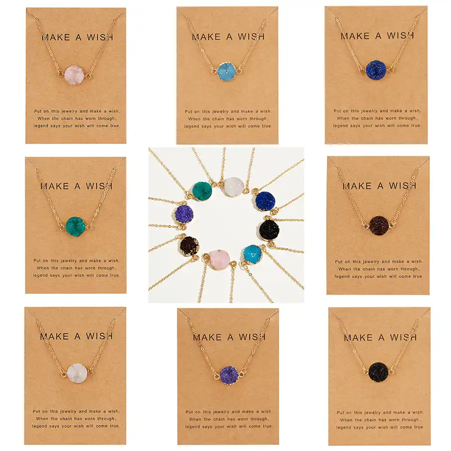 Rinhoo Carte De Souhait Bijoux Cadeau Collier Pendentif Rond En Quartz De Pierre Naturelle Druzy Pierre Lien Chaine Collier Pour Les Femmes Colliers Aliexpress