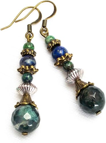 Kimaya Bijoux Boucles D Oreilles Artisanales En Pierre Naturelle Agate Indienne Et Chrysocolle Amazon Fr Bijoux