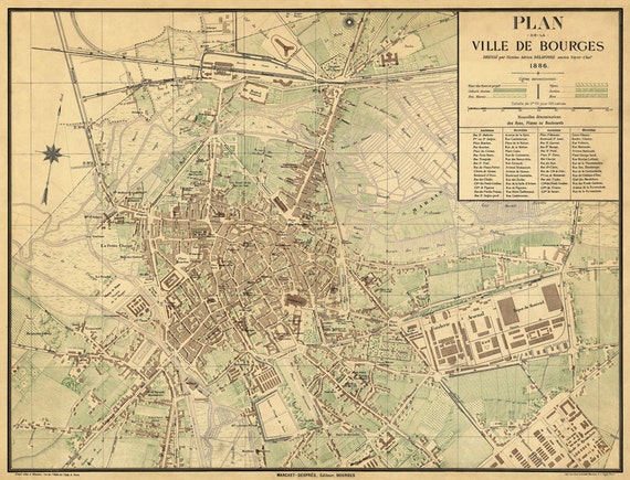 Bourges Ancienne Carte De Reproduction Fine De Bourges Etsy