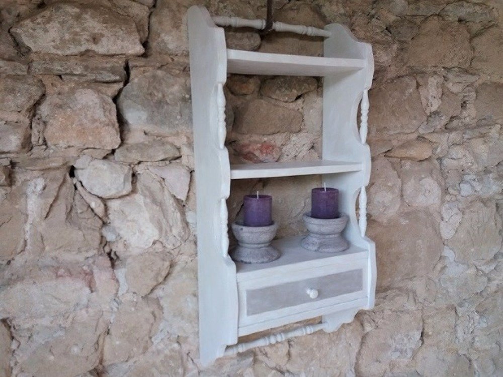Etagere Murale De Style Rustique Avec Grande Corniche Patine Creme 78 Cm
