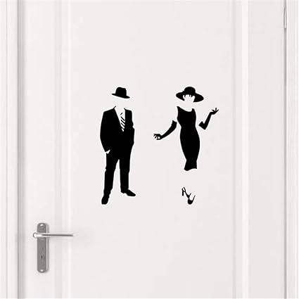 Stickers Muraux Disney Noir Et Blanc Silhouette Elegante D Homme Et De Femme Pour Le Signe De Porte De Toilette Autocollant Mural Amazon Fr Bricolage