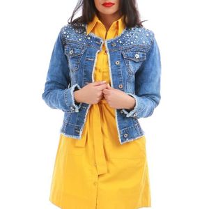 Blouson Jean Femme Fantaisie Veste En Jean Femme Bleu Brut Fonce Taille Xl