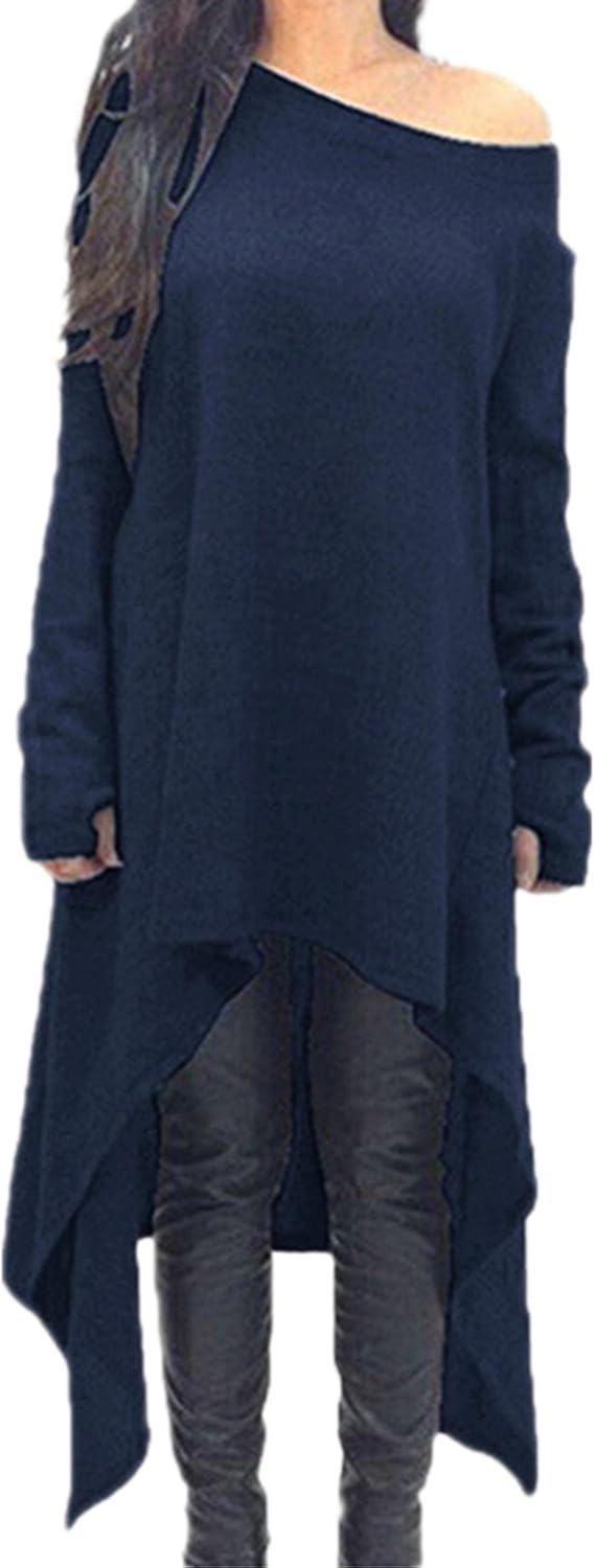 Zanzea Robe Pull En Maille Fine Oversize Femme Hiver Tunique Longue Grande Taille Robe Sweat Asymetrique Amazon Fr Vetements Et Accessoires