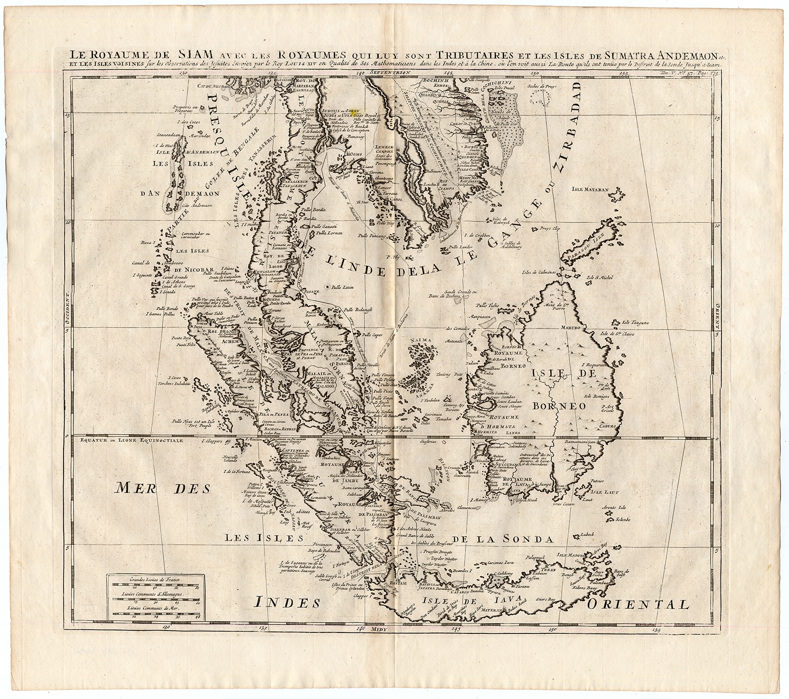 Le Royaume De Siam Avec Les Royaumes Qui Luy Sont Tributares Et Les Isles De Sumatra Andemaon Etc Et Les Isles Voisine Avec Les Observations Des Six Peres Jesuits