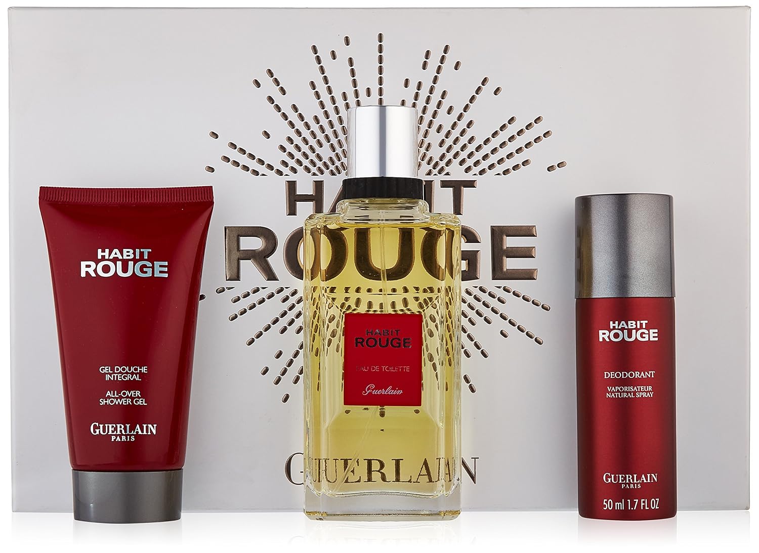 Show all stockists of Habit Rouge L'Eau in the Shopping Directory. Habit Rouge by Guerlain Deodorant Spray 5 0 oz for Men Additional Information Brand Guerlain review by Roger Magloire on 9/10/18 Average customer rating I have been using Habit Rouge for years,in my opinion it is the best of the bests review by D D on 11/1/14. Guerlain Habit Rouge Gift Set for Men (Eau de Toilette Spray, Deodorant Spray, Shampoo) Brand GUERLAIN 50 out of 5 stars 1 rating Currently unavailable We don't know when or if this item will be back in stock 3 Pc Gift Set 34oz EDT Spray, 17oz Deodorant Spray, 25oz AllOver Shampoo Launched by Guerlain in the year 1965.