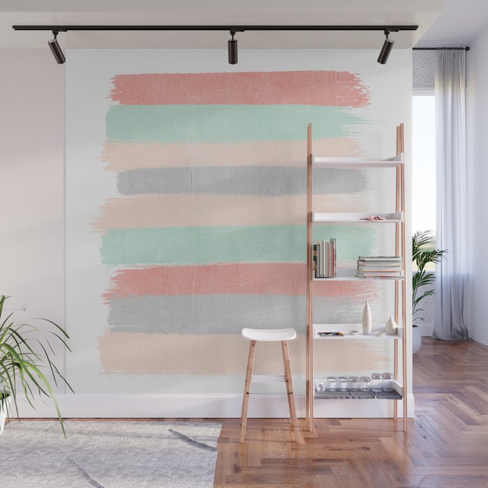 Stripes Hand Painted Abstract Minimal Nursery Decor Gender Neutral Palette Wall Mural By Charlottewinter Society6