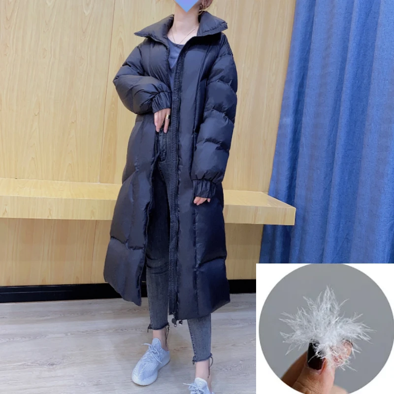 Femmes Manteau Long En Duvet Hiver Chaud Canard Plume Pardessus Maxi Noir Manteau