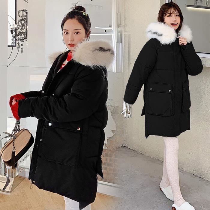 Manteau Chaud Veste Femme Grande Taille Manteau Long Femme Hiver Grande Fourrure A Capuche Couleur Noir Black Achat Vente Manteau Caban Soldes Sur Cdiscount Des Le Janvier Cdiscount