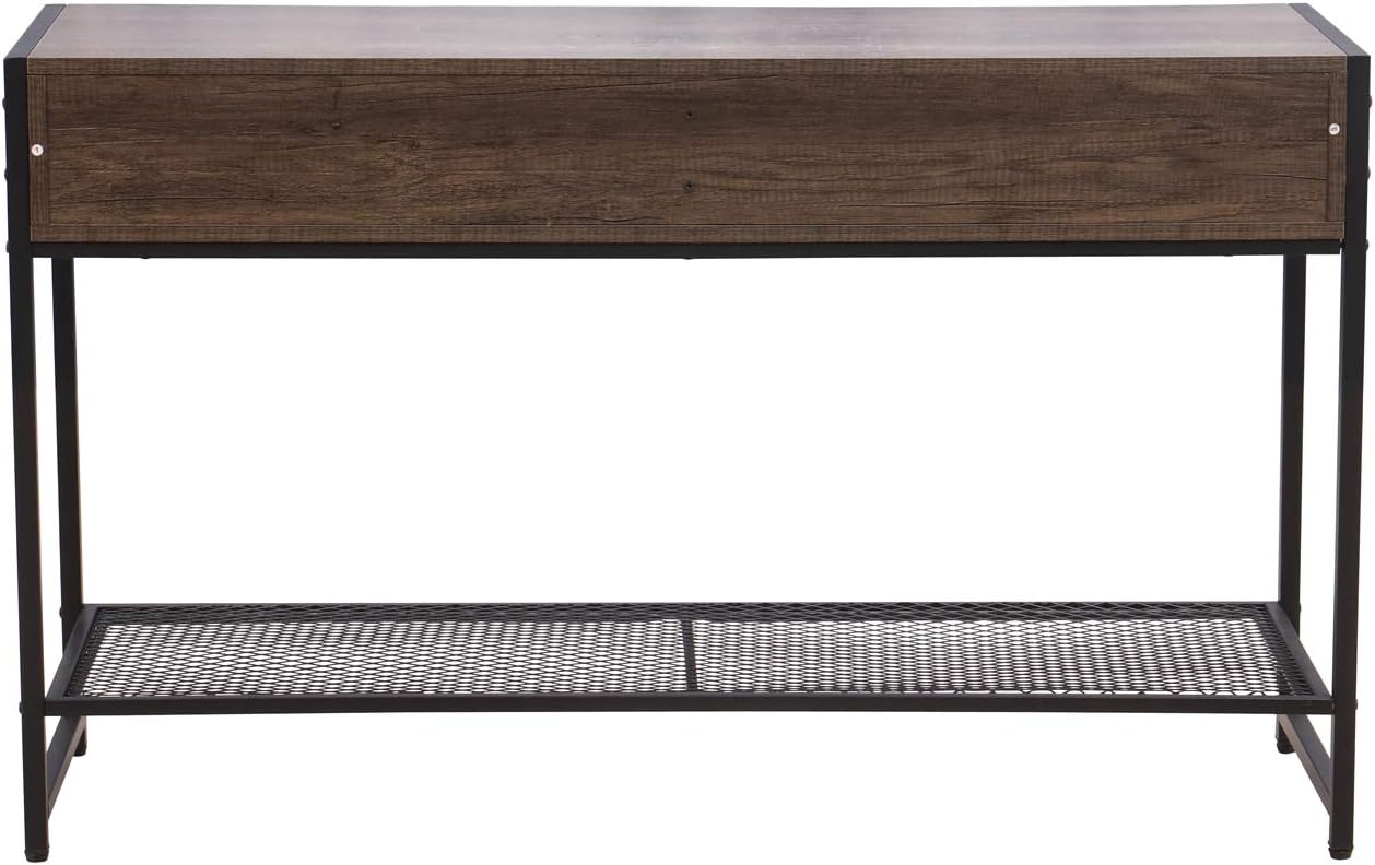 Table Dappoint En Bois Avec Etagere Buffet De Style Vintage Avec Cadre En Metal Noir Pour Salon Meuble De Bureau Commode Dressing Marron Symylife Table De Console Avec 2 Tiroirs Ameublement Et